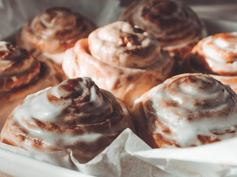 Подготовьте крем (смесь творожного сыра, масла и сахарной пудры) и нанесите его на еще горячие булочки.